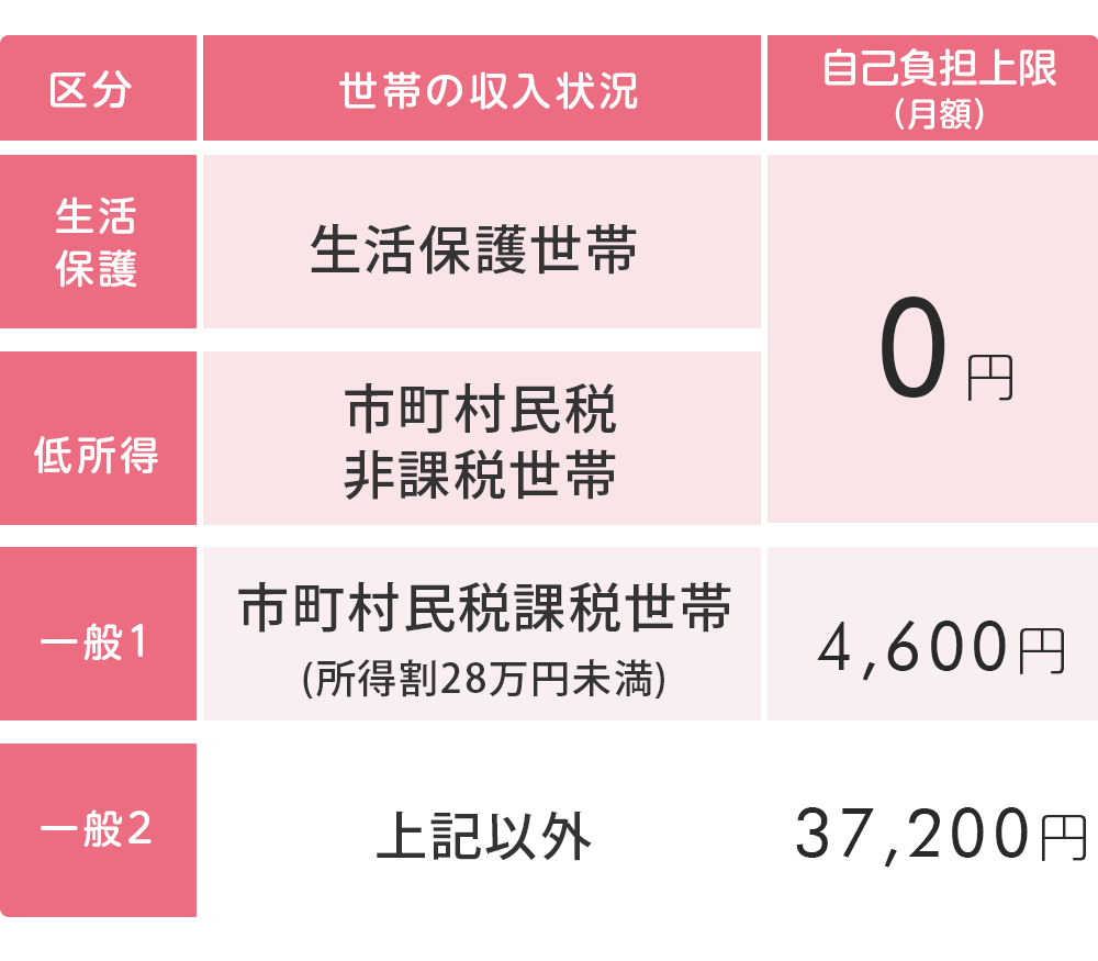 さらに世帯の所得に応じて「負担上限月額区分」が設定されており、1か月の利用日数に関わらずそれ以上の負担は生じません。